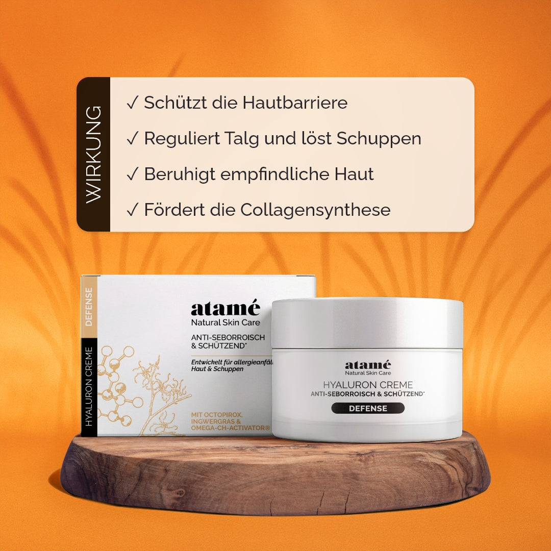 Schützende Spezialpflege für Allergien neigende Haut. Die innovative Wirkstoffkombination mit Octopirox, Ingwergras und Tripeptiden stärkt die Hautschutzbarriere, reguliert die Talgproduktion und schützt vor äußeren Einflüssen. Hochwertige Feuchtigkeitsspender hydratisieren intensiv, während antioxidative Wirkstoffe die Collagensynthese anregen und die Hautstruktur verbessern. Die Haut fühlt sich beruhigt, gestärkt und geschmeidig an.